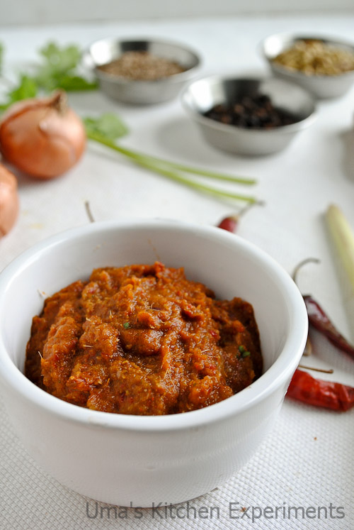 2) Drain the water and add the soaked chillies along with other ingredients in a mixer/blender and make a smooth paste of it by adding small quantity of water.