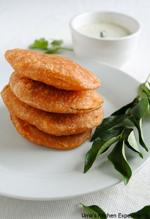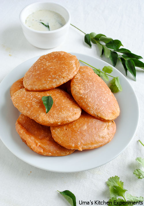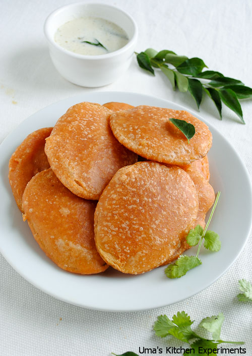 ‘Bajji’ is one of the popular snacks in South India. Whenever there is a festival or function or even a get together, bajji is a common dish that one would come across. Very popular in the beaches of Singara Chennai, one would never miss the shops selling these bajji’s. One can notice a variety of bajji’s such as Plantain, Potato, Cauliflower, Onion and Pappad Bajji’s. The below method describes the preparation of Potato Bajji. Instead of potato you can use either Plantain or Onion or Cauliflower or Pappad to prepare different varieties. Though they taste different the preparation steps are one and the same.