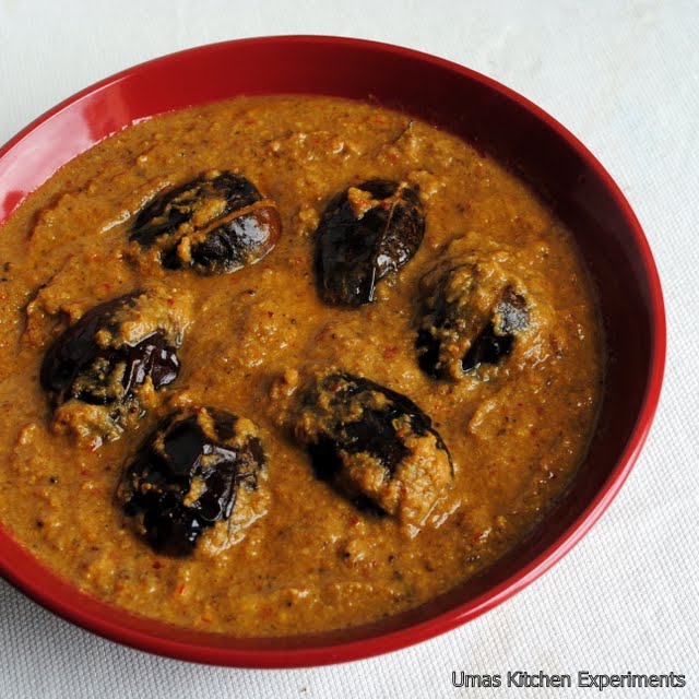 Ennai Kathirikkai Kulambu / Oil Fried Stuffed Eggplants Gravy