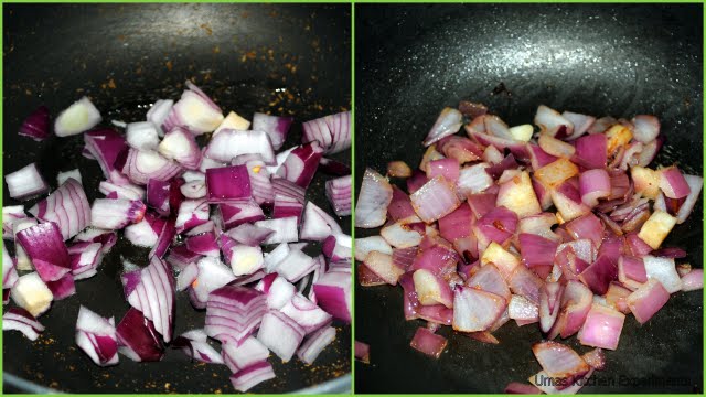 3) Add a teaspoon of oil and onion in the same pan. Fry them till onions are soft.