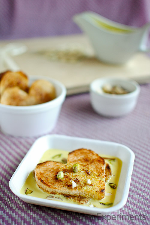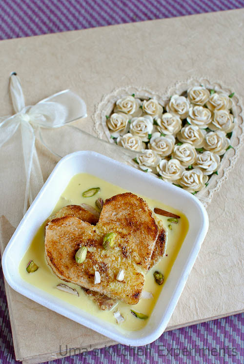 Rich and delicious dessert!!Love the way you have customised the bread to the season by cutting it in the shape of heart..