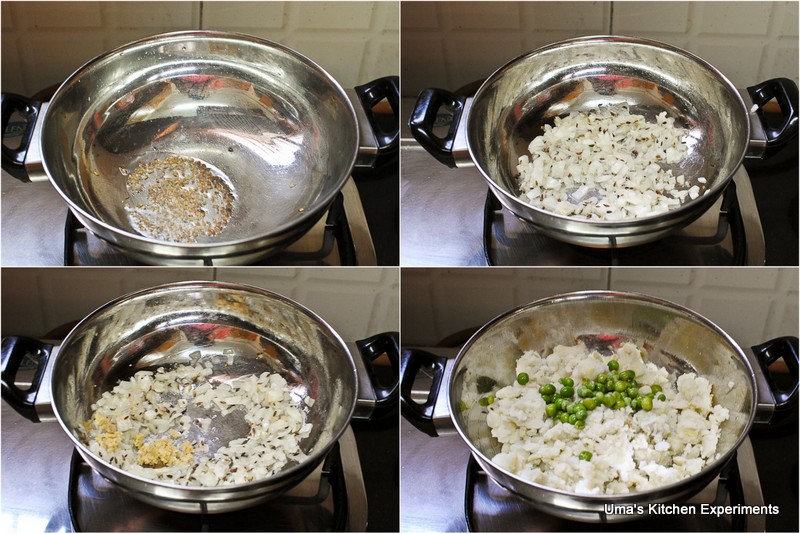 2) When the oil is hot, add the cumin seeds and allow it to crackle.