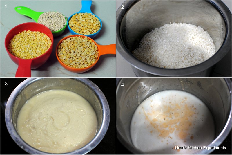 1) Soak all the ingredients given under batter separately for 3-4 hours or overnight.