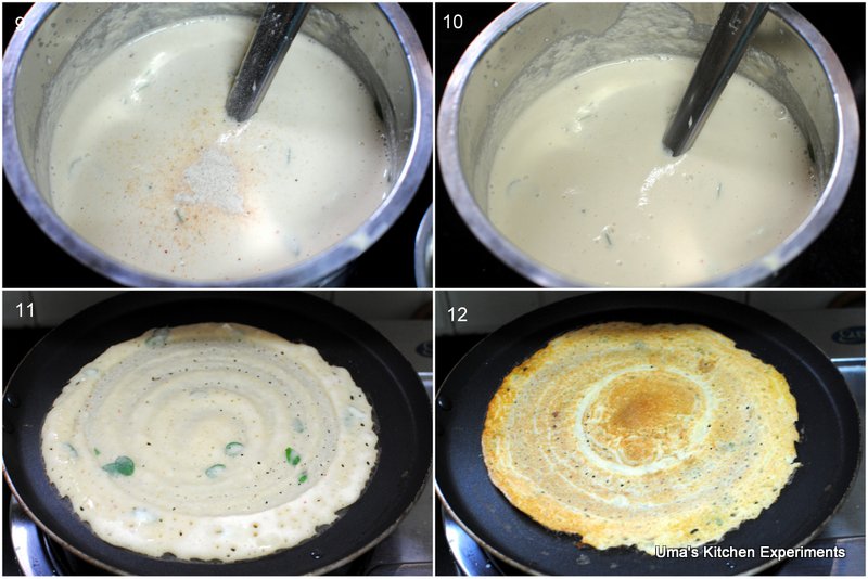11) When one side of the dosa is cooked, turn/flip to other side and allow it to cook.
