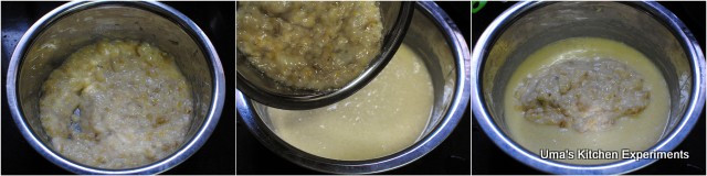 5) After 2 minutes, add the mashed banana mixture to the butter mixture. Add vanilla extract. Slightly mix it.