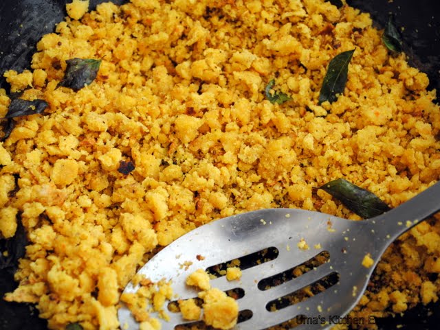 7) Then, stir continuouly till they become crumble.Cook uncovered for 3 minutes by stirring continuously.
