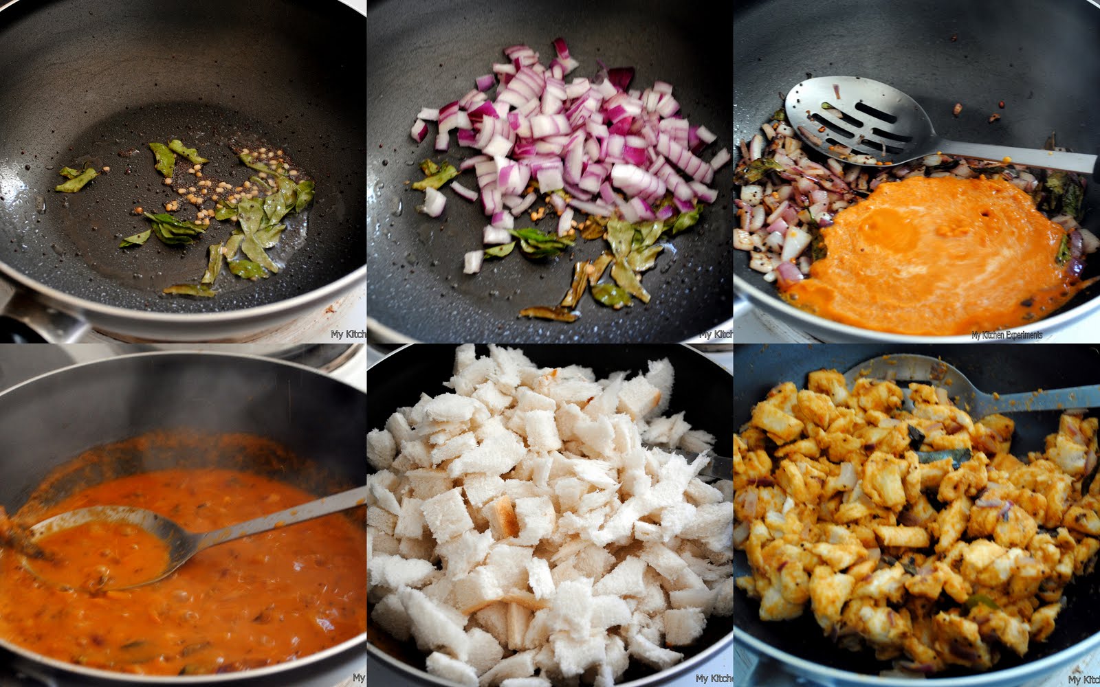 9) Turn the flame to low and add bread pieces.