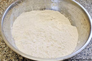 1) In a mixing bowl, mix all purpose flour, wheat flour and salt.