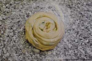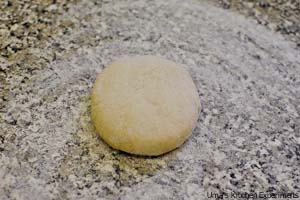 4) Take one ball in a floured kitchen surface and roll it to approx.20 CM wide. Make sure the dough is not sticking with the surface.