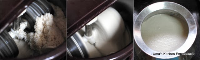3) Drain the water from urad dal and grind it to a smooth batter adding enough water at frequent intervals. Once done, collect it to a big container.