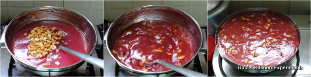 8) Add cardamom powder and cashew nuts. Mix well for 2 minutes and then turn the flame off.