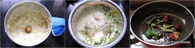 3) In a mixer, add all the ingredients given under grinding. Add enough water for grinding. Cucumber tend to release water, so add water according to it. I wanted mine to be semi liquid so added 1/4 cup of water.