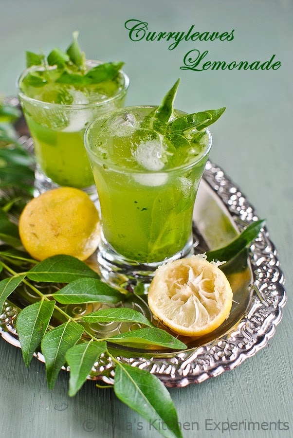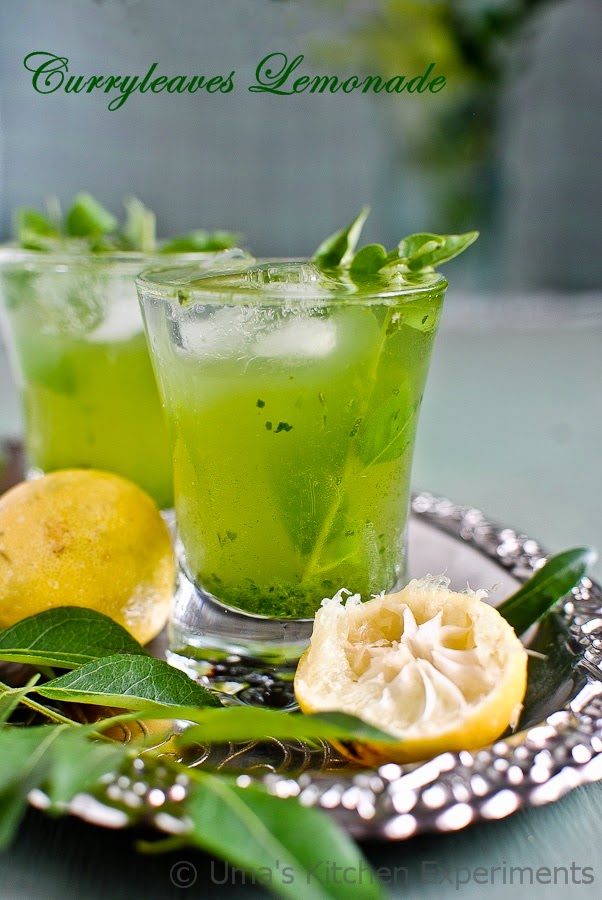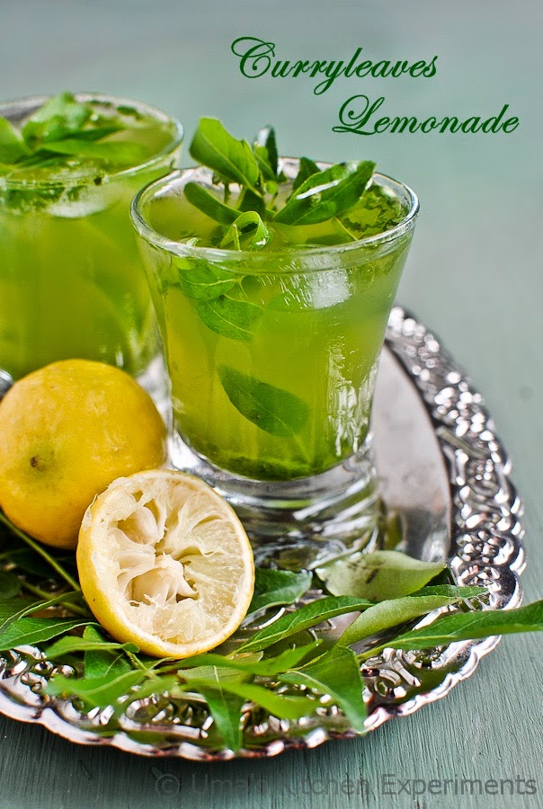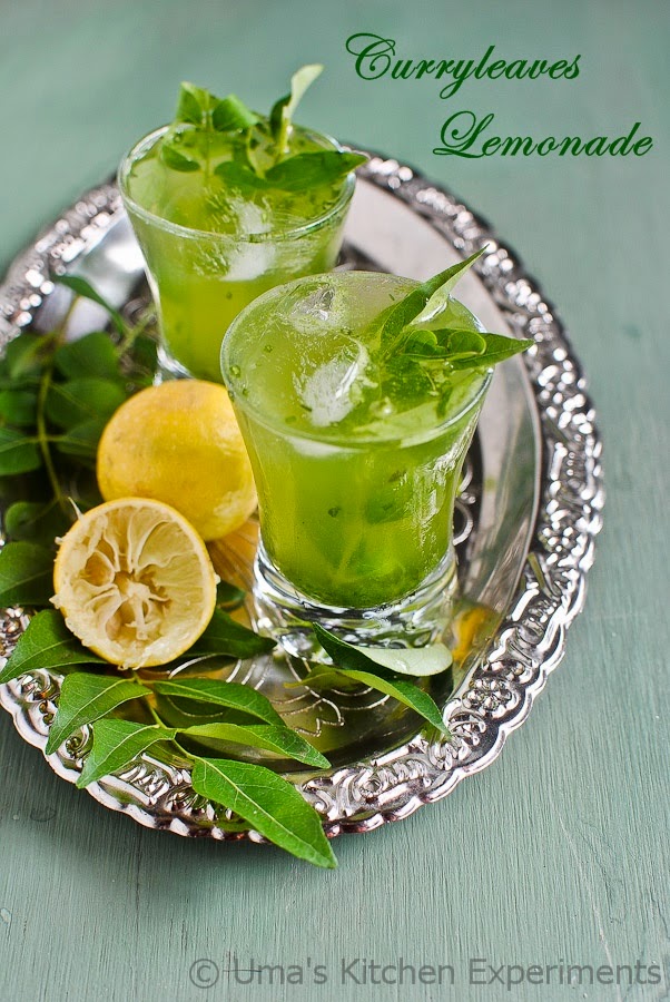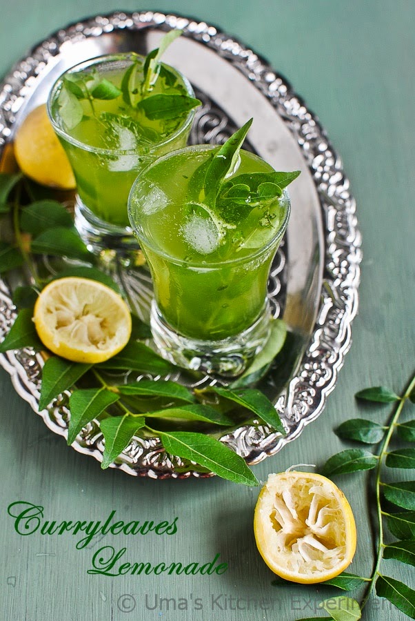 3) Grind curry leaves with 1 tablespoon of water. Add it to the lemonade. Mix well and keep refrigerated till you serve.