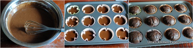 5) Pour this batter to the prepared cupcake tray equally.