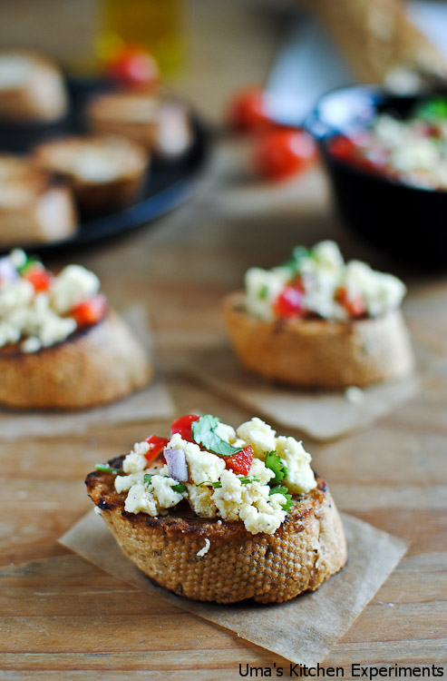 Nice Indian twist on Bruschetta.. never saw paneer as the topping. looks pretty