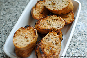 1) Instead of toasting the bread, you can also bake them. Place the bread slices in the 180C preheated oven and bake it for 5 minutes or until crisp.