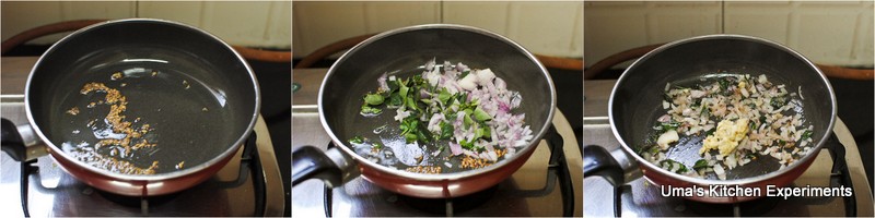 4) Add the onion, curry leaves and saute till onion becomes soft.