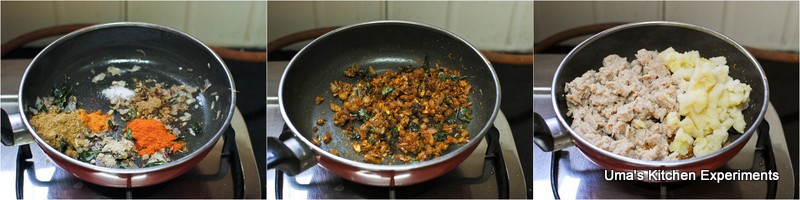 Sometimes, I prefer shallow frying method when I prepare this dish in small batches as it requires precooking and takes little long time. This time, I shallow-fried all the cutlets and hence sauteed the mashed potato and soya chunks mixture with masalas. Now off to the recipe.