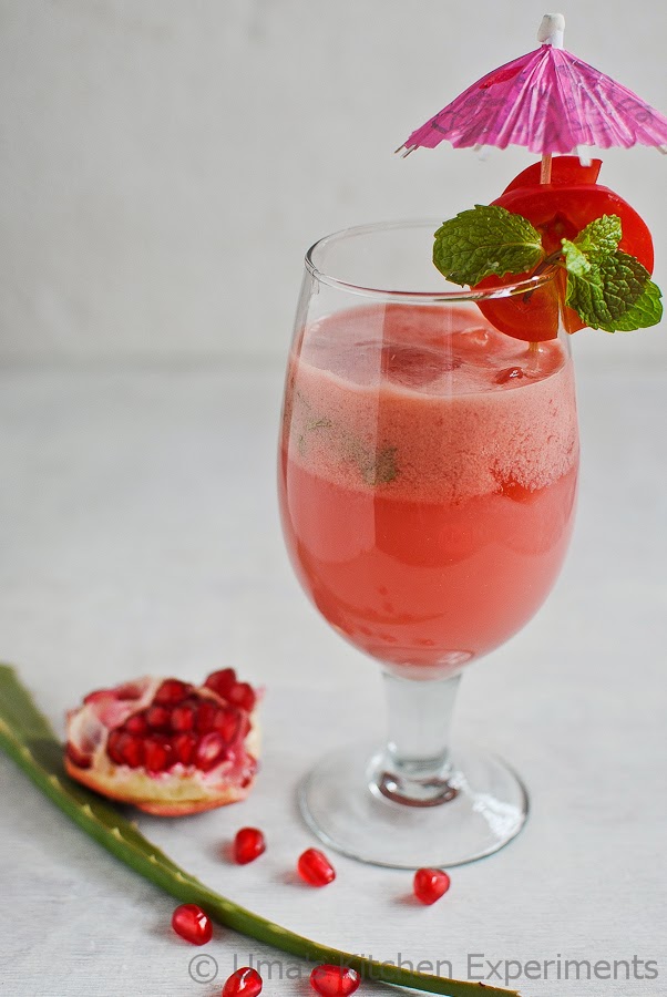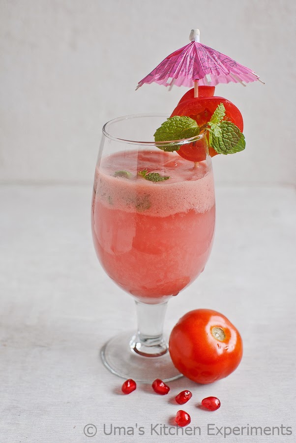 2) Blend tomato and pomegranate seeds by adding a cup of water and filter the juice alone.